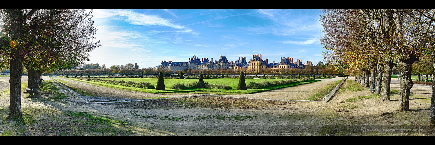 Photo panoramique prise du Parc du château de Fontainebleau.