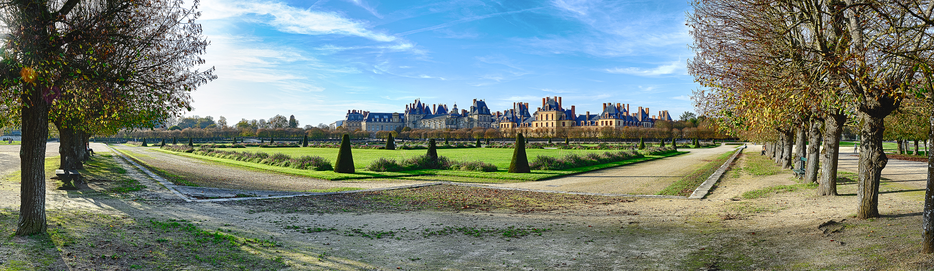 Photo panoramique prise du Parc du château de Fontainebleau.
