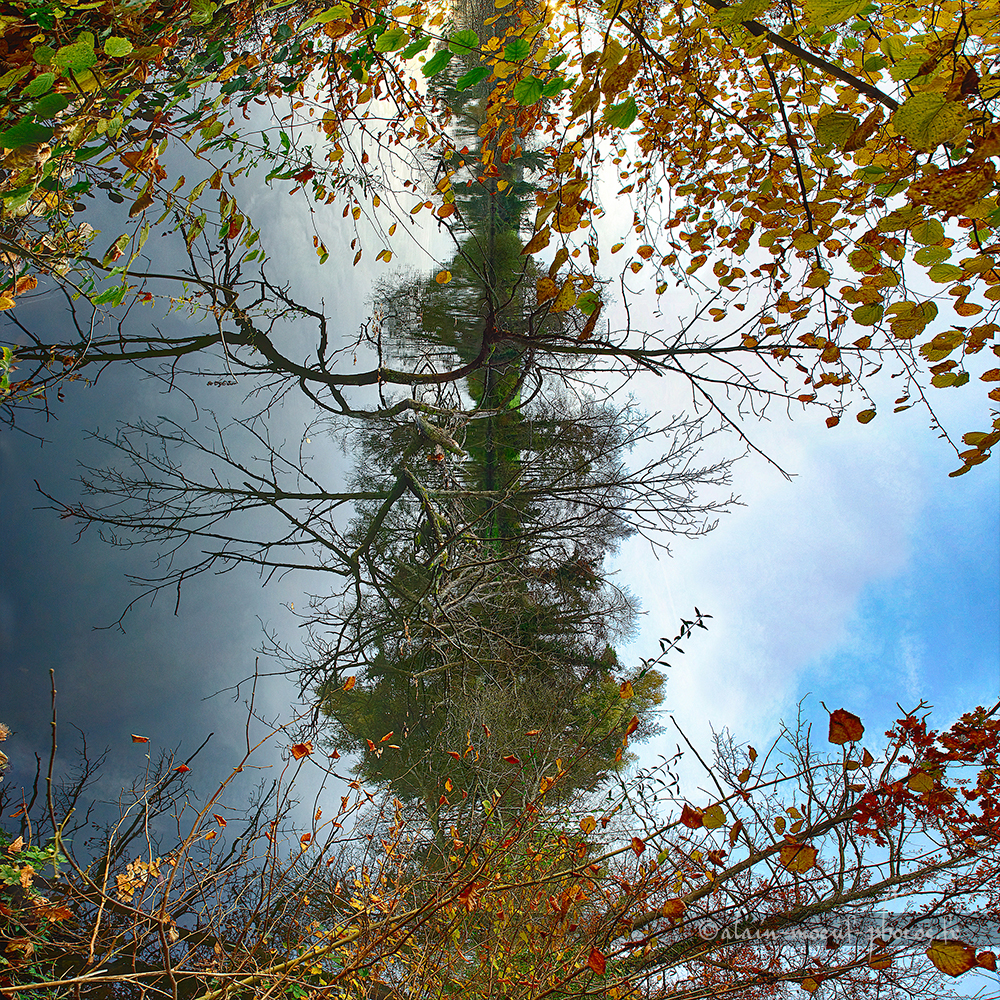 A la base c'est la photo d'un reflet dans un lac, prise dans une troué d'arbustes. Puis la photo a été basculée, donnant à celle-ci l'apparence d'une étrange créature … proche d'un test de Rorschach.