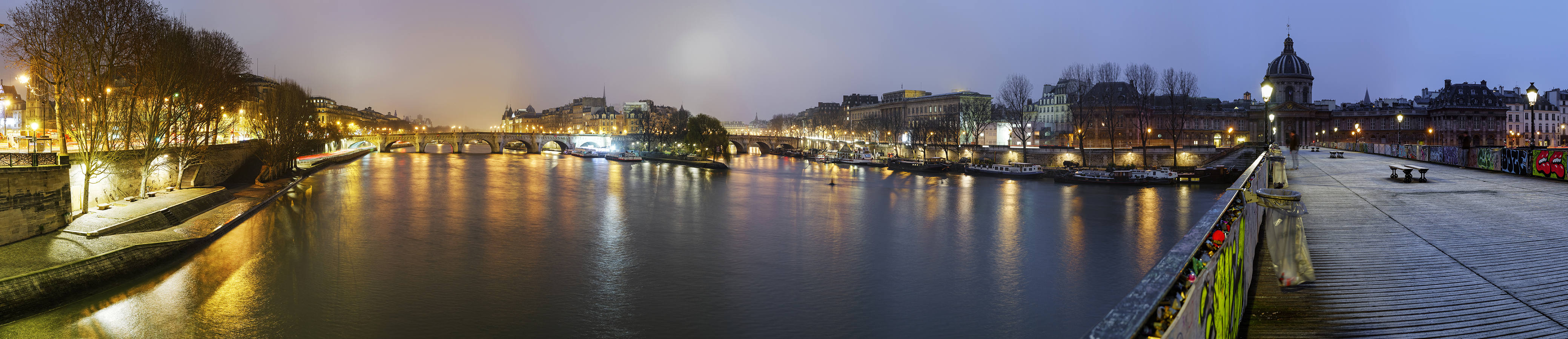 Ce panoramique de la Seine avec l'Ile de la Cité a été pris depuis le Pont de Arts. Il est constitué de 16 photos.