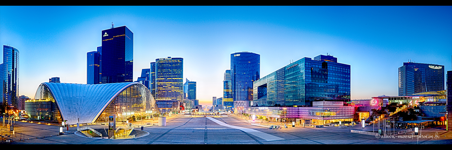 Ce panoramique du parvis de la Défense est réalisé depuis la Grane Arche. C'est un panoramique réalisé à partir de 7 photos.