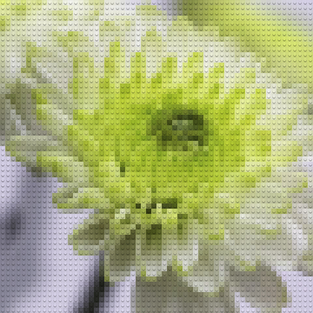 La pixellisation de la photo de fleurs a été réalisée de façon a ce que tous les points (pixel) de la photo aient les mêmes dimensions que le pas de la plaque de Lego®.