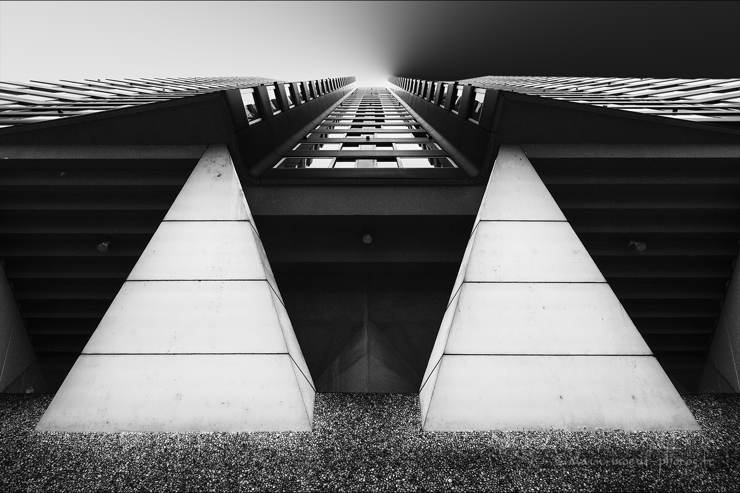 Ce pied d'immeuble du quartier Beaugrenelle, avec sa perspective et ses 2 gros piliers en béton me font penser à l’arrière d'une navette intergalactique.