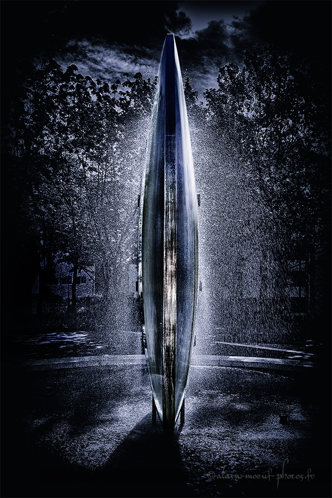 La photo de base est la fontaine de Davos Hanich du square Marcel Mouloudji dans le 19ème à Paris. Après elle a été travaillée sous Photoshop® .