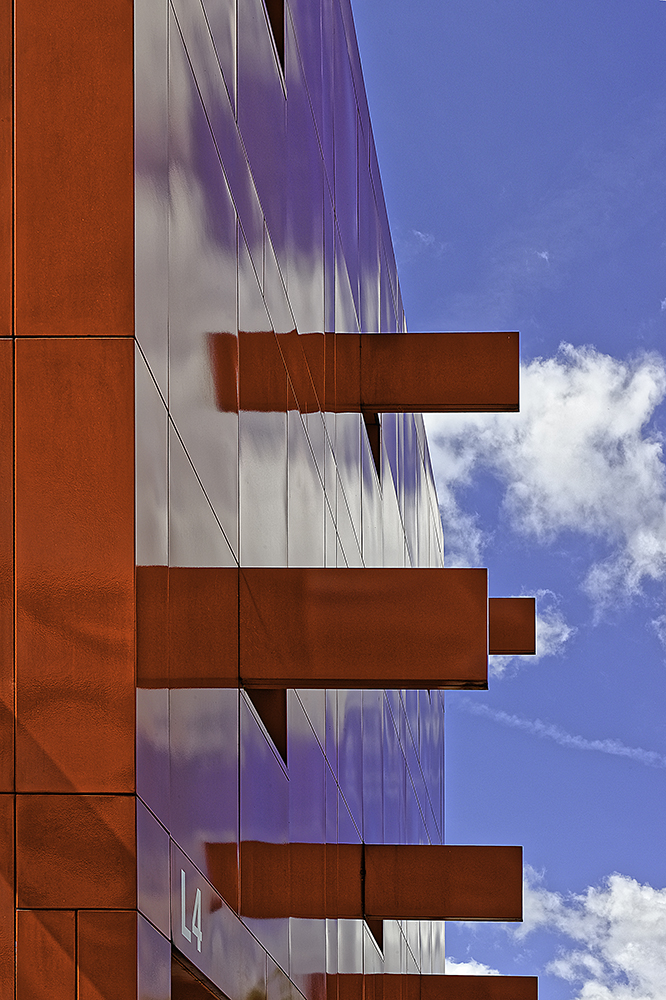Les folies de B. Tschumi, bâtiments rouge du Parc de la Villette, avec leur feuilles métalliques laquées de rouge sont des espaces multiples formés d'une même trame, mais sans cesse décliné en une diversité de forme. Un cadeau pour la photo.