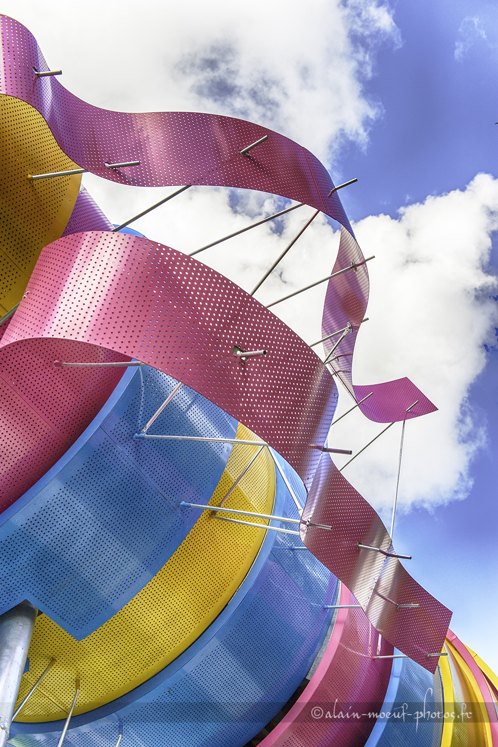Cette photo est prise sous le monstre de l'un des espaces jeux du Parc de la Villette.
