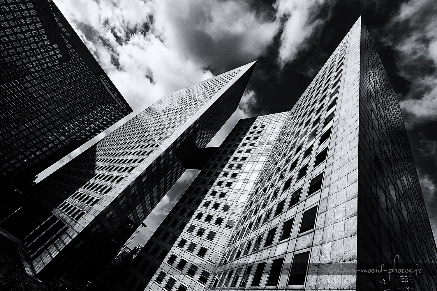 Photo prise au pied de la Tour Pascal et face à la Tour Voltaire à la Défense
