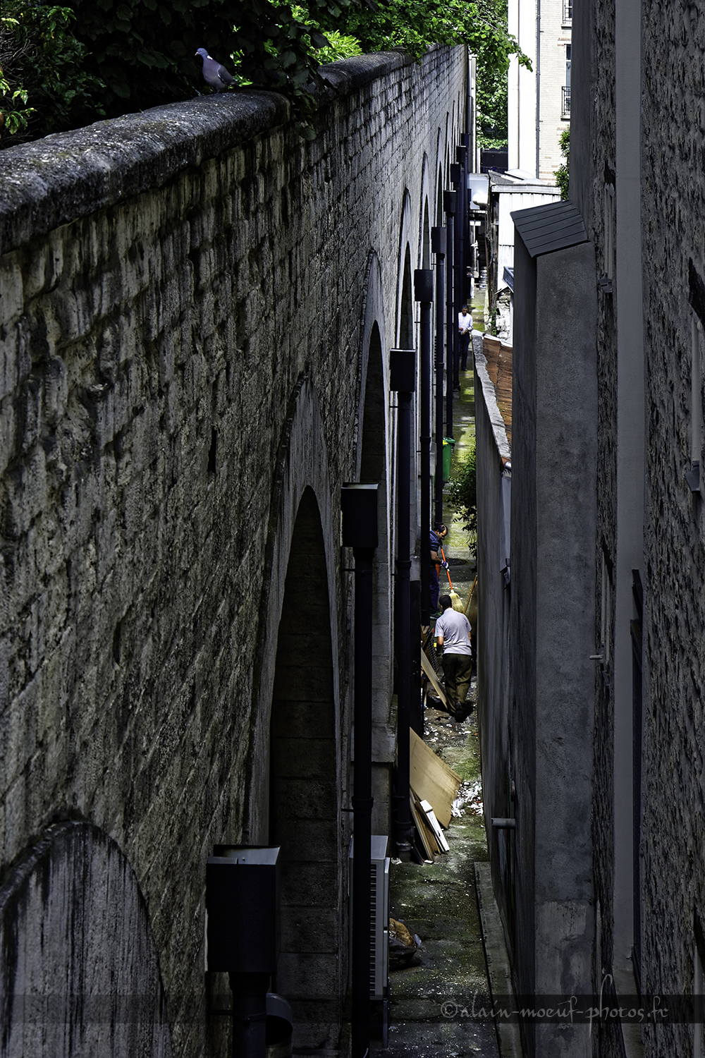 Entre le Viaduc_des_Arts, le long de l'avenue Daumesnil, et les immeubles qui sont derrières il y a une petite ruelle, ou l'étroitesse contraste avec la hauteur des murs. Il faut attendre que le soleil atteigne son zénith pour qu'enfin il en réchauffe le sol.