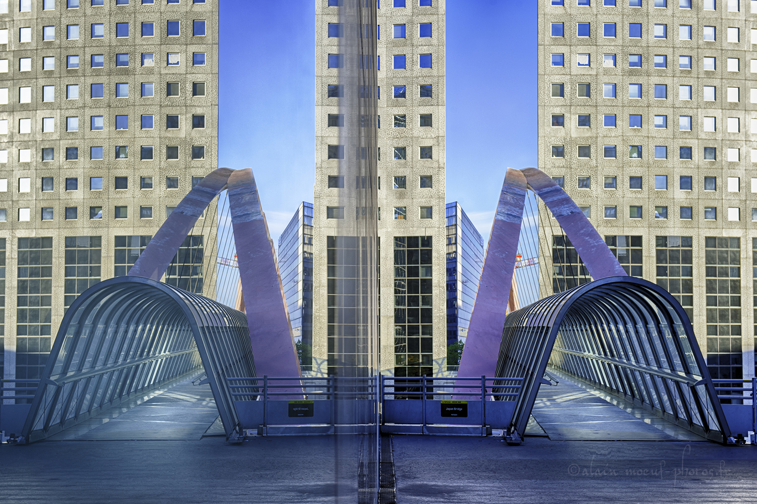 La passerelle Japan Bridge (parfois appelée passerelle Kupka) de l'architecte Kisho Kurokawa entre la tour Kupka A et la tour Pacific à La Défense Paris.