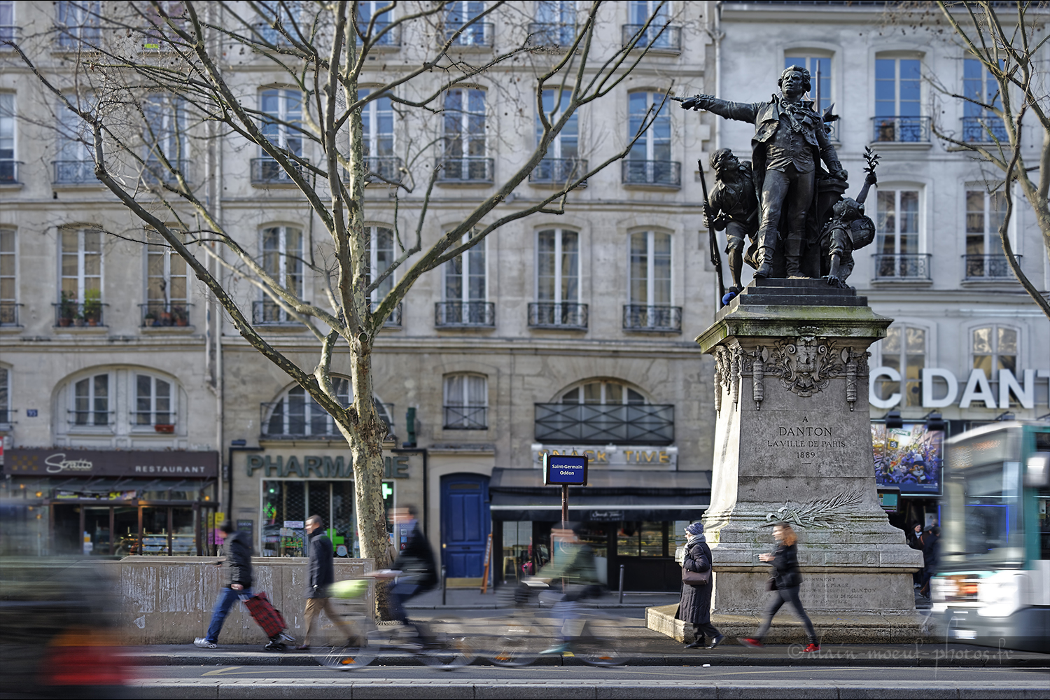 Sa statut en Bronze située sur la place Henri Mondor au métro Odéon, en bordure du boulevard saint Germain, a été réalisé par Auguste Paris et érigé en 1891 à l'emplacement de la maison du tribun.