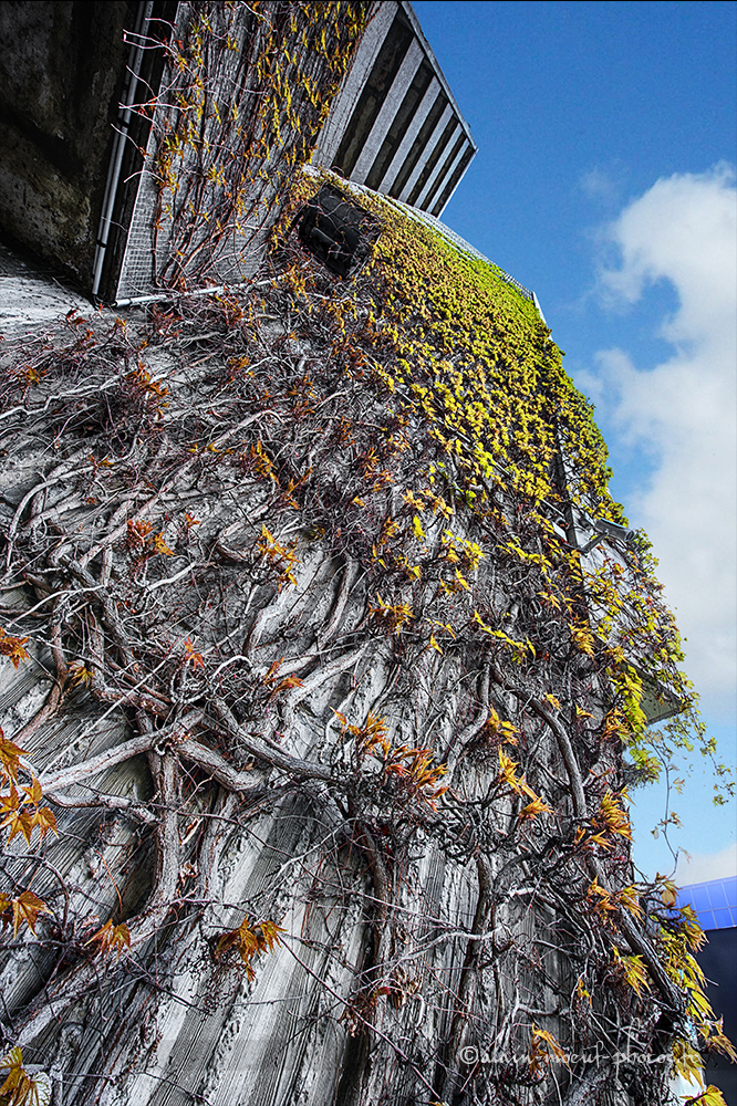 Photo du mur végétalisé de l’école Bernard Buffet, dans le nouveau quartier à côté du parc Clichy-Batignolles Martin-Luther King, Paris 17ème