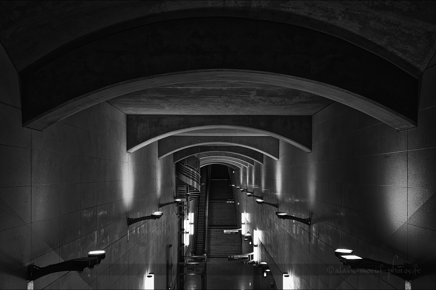 Descente vers le RER C à la station BNF, à l’angle de la rue neuve Tolbiac et l’avenue de France