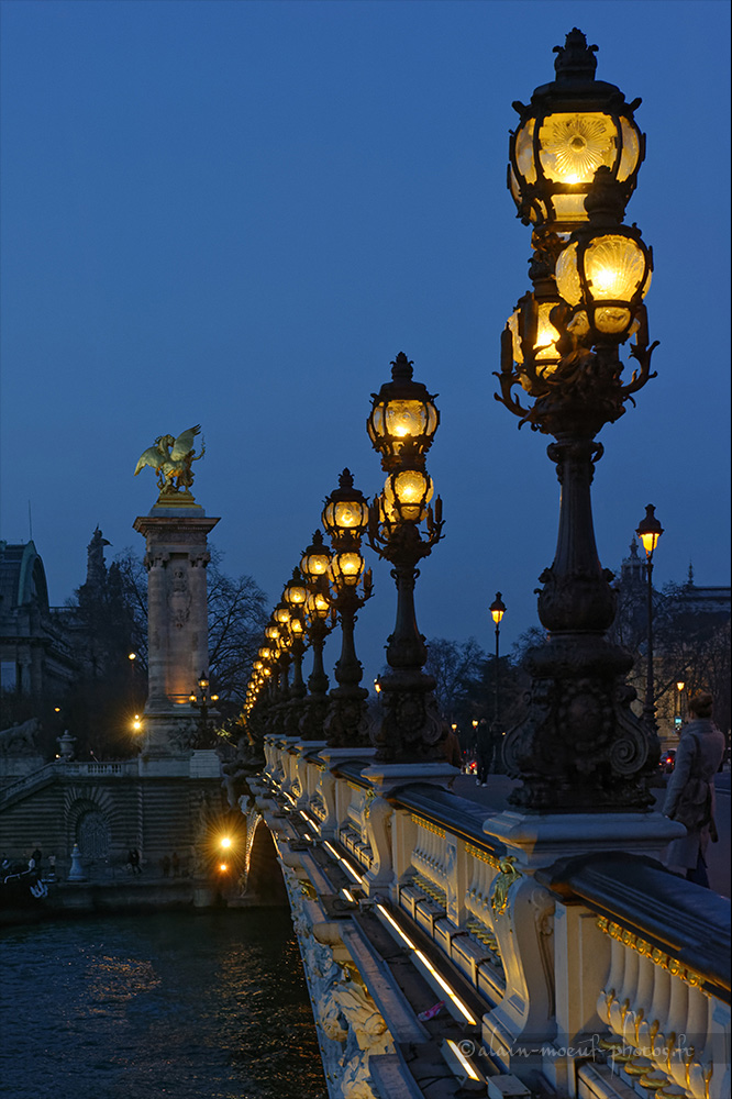 Inauguré pour l'Exposition universelle de Paris en 1900, le pont Alexandre III était destiné à symboliser l'amitié franco-russe, instaurée par la signature de l'alliance conclue en 1891 entre l’empereur Alexandre III (1845-1894) et le président de la République française Sadi Carnot .Construit dans l'axe de l'esplanade des Invalides, il conduit de celle-ci aux Petit et Grand Palais