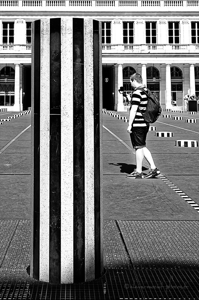 Rencontre entre lignes horizontales et les colonnes de Buren auPalais Royal à Paris