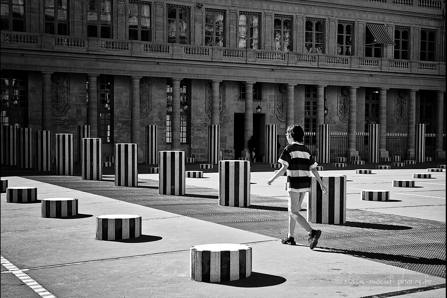 Rencontre entre lignes horizontales et les colonnes de Buren auPalais Royal à Paris