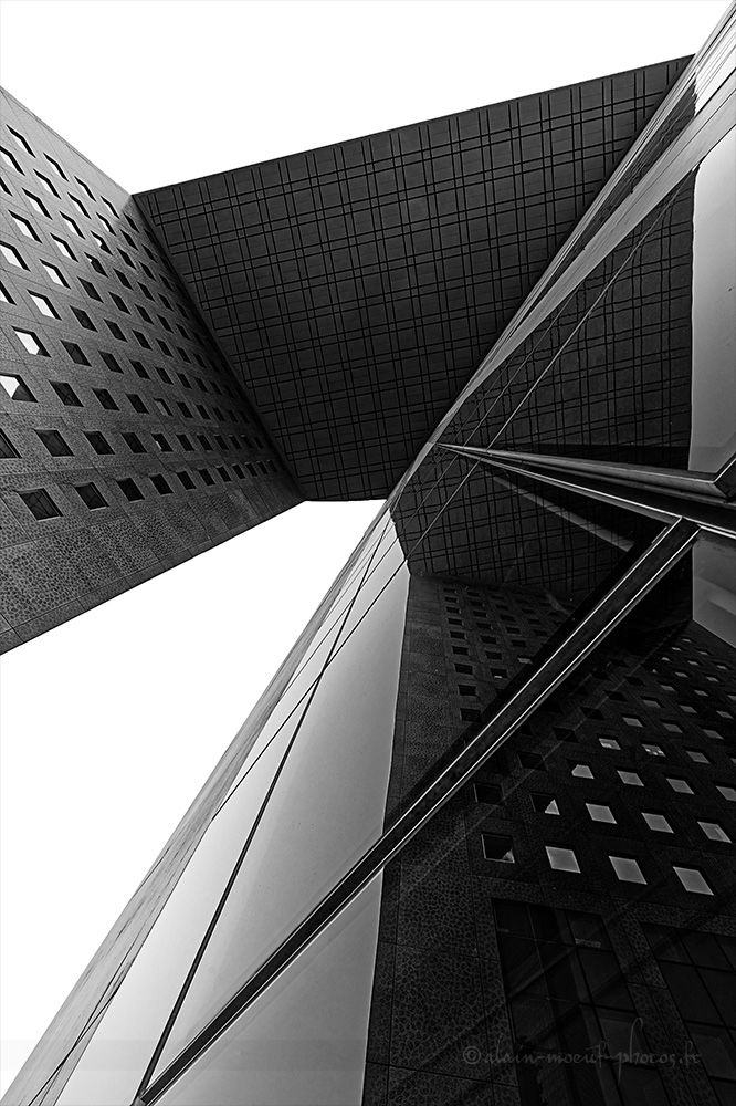 Vue de dessous de la tour Pacific quartier Valmy à la Défense, Paris