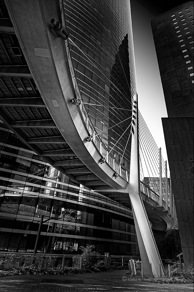 Dessous de la passerelle entre la tour Société Générale et la tour Basalte àla Défense, Paris