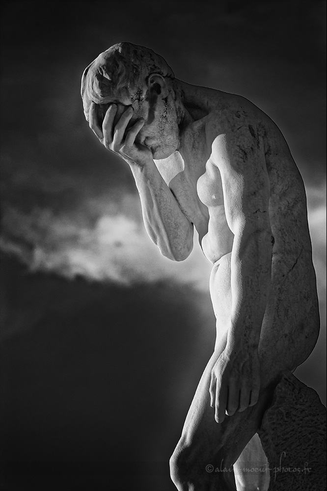 La statue de Caïn venant de tuer son frère Abel (1896) par Henri Vidal (1864-1918) (1731-1806), dans le jardin des Tuilleries (Paris)