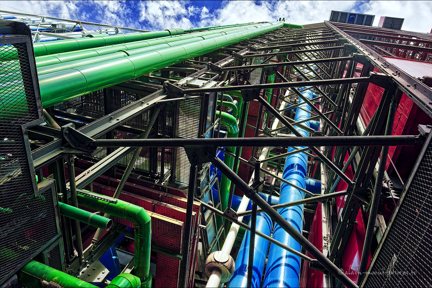 Photo de la structure tubulaire du centre BeaubourgCentre national d'art et de culture Georges-Pompidou , (Paris)