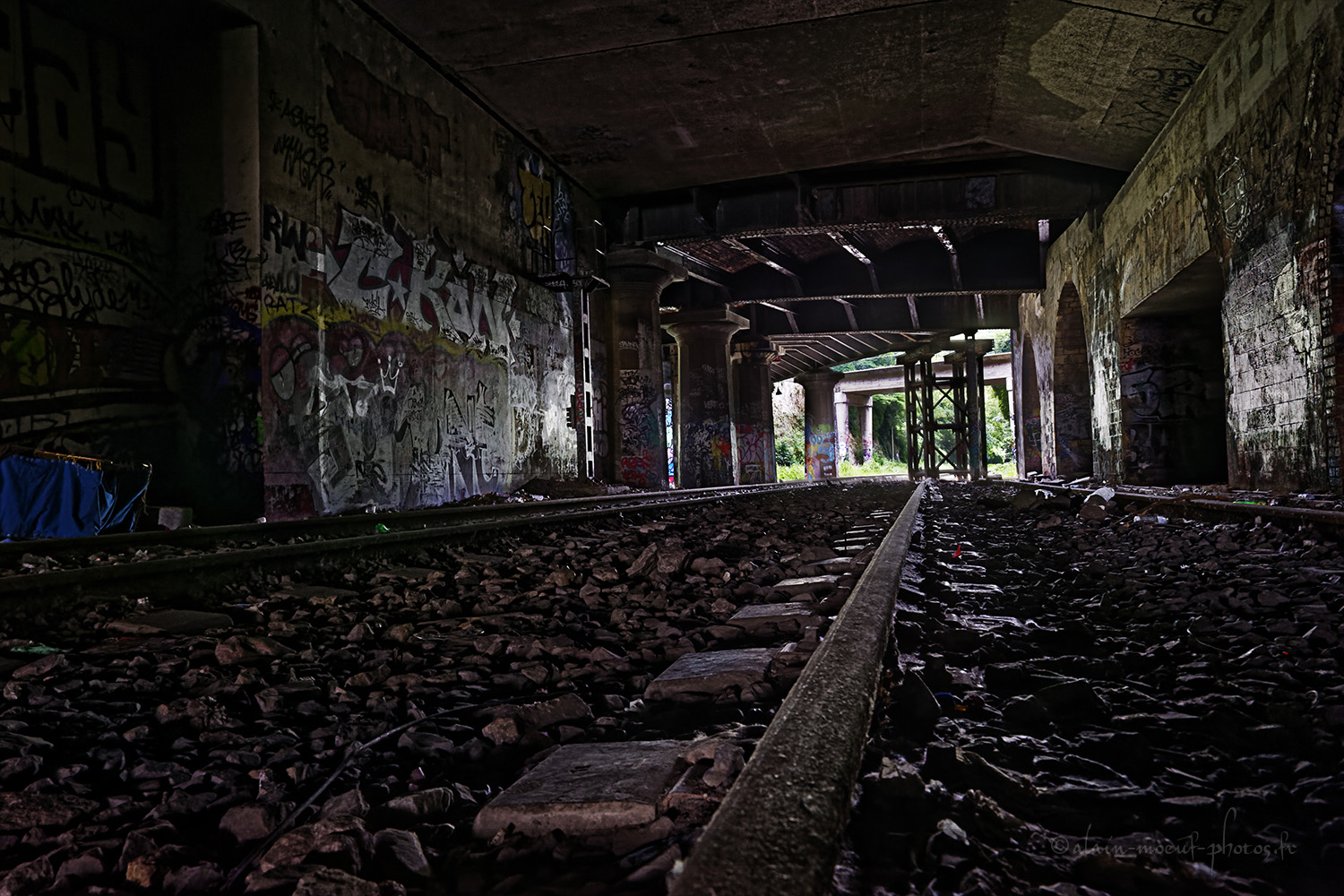 A l'intérieur du tunnel de l'ancienne ligne de la petite ceinture dans le parc des Buttes-Chaumont, de Paris