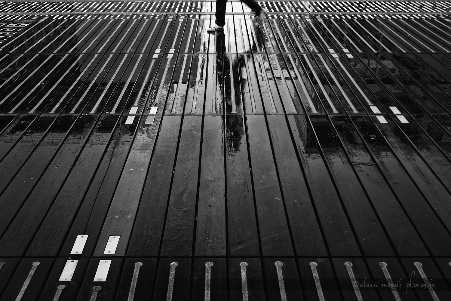 Photo réalisée après la pluie sur l'esplanade de la Bibliothèque nationale de France (BnF), Paris