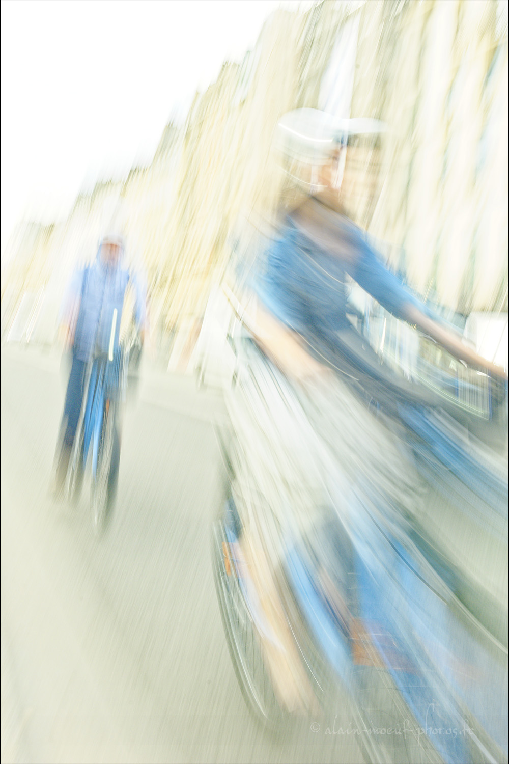 Prise de vues d'un sujet en déplacement et avec un mouvement de l'appareil. Pour ce type de photo, le temps de pose est généralement compris entre 1/4 et 1/10s.