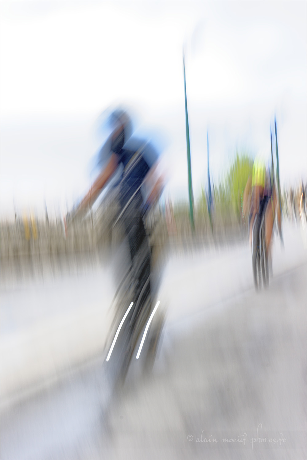 Prise de vues d'un sujet en déplacement et avec un mouvement de l'appareil. Pour ce type de photo, le temps de pose est généralement compris entre 1/4 et 1/10s.
