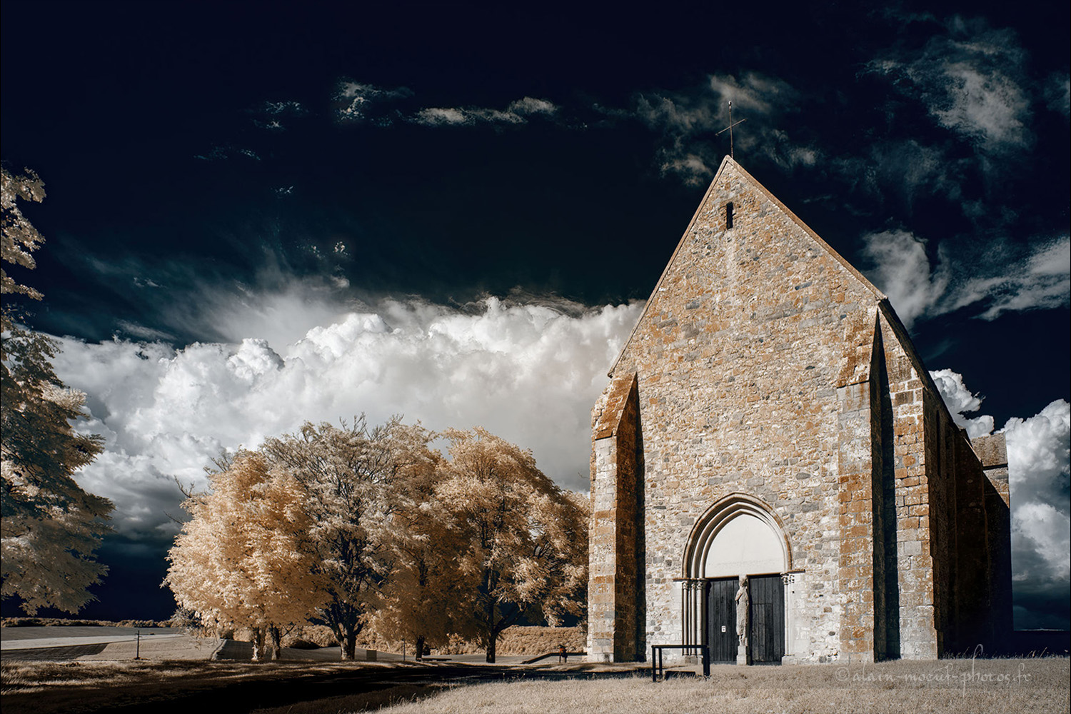 Prise de vues en Infra Rouge, avec un boitier défiltré équipé d'un filtre chrome devant l'objectif