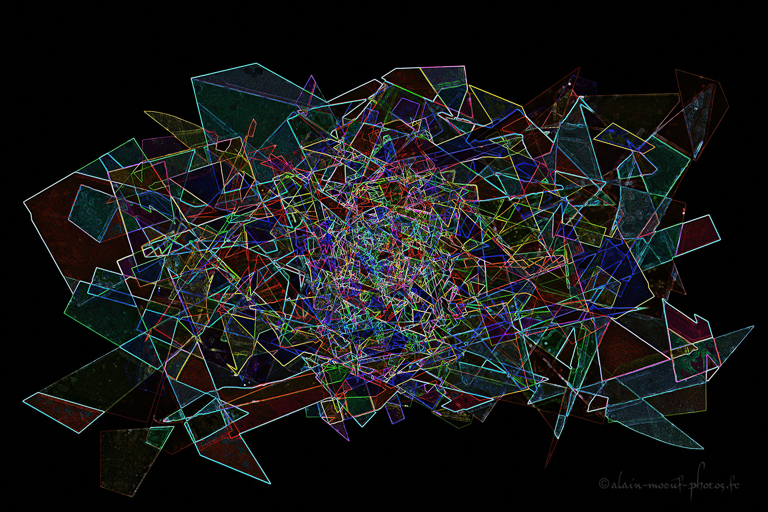 Abstraction par post-traitement. Prise de vue en lumière polarisée.