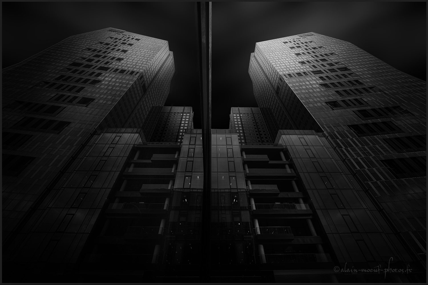 Photo de la tour Tour Majunga qui se reflète un bâtiment de la défense, Paris