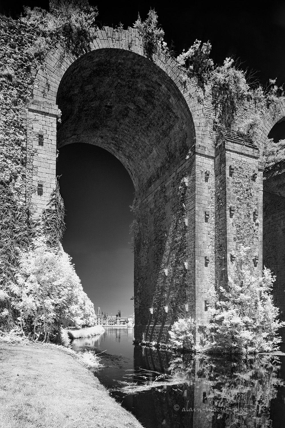 Photo en infrarouge, avec filtre 850 nm, de l' Aqueduc de Maintenon