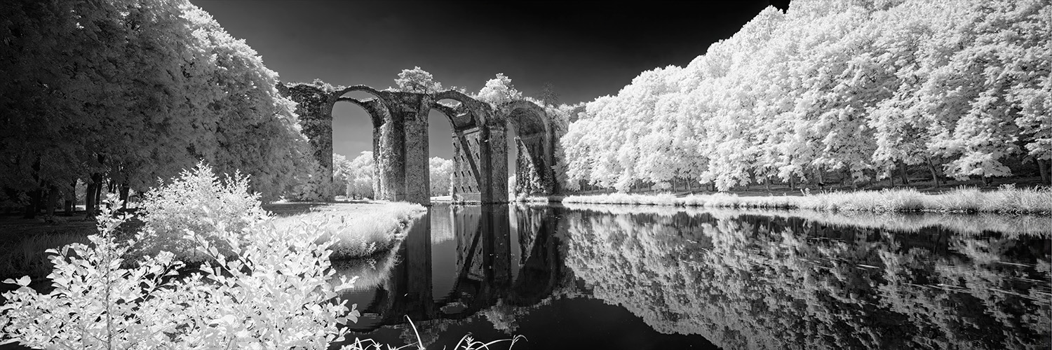 Photo en infrarouge, avec filtre 850 nm, de l' Aqueduc de Maintenon