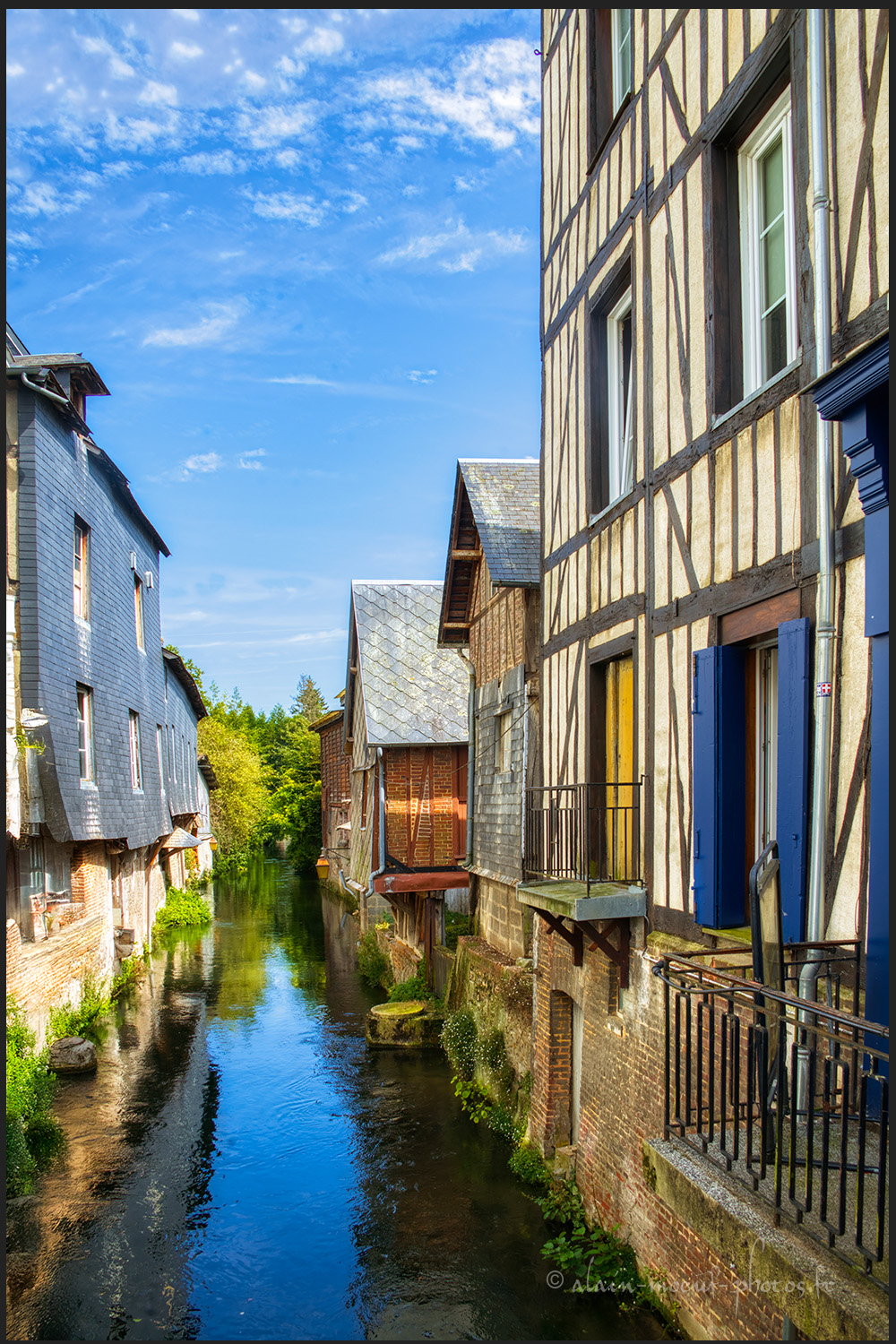 Photo d'un des cannaux à Pont-Audemer, en Normandie.