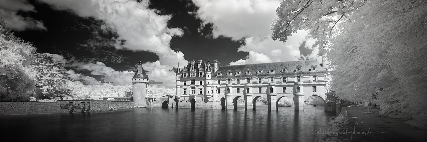 Photo panoramique du Château de Chenonceau, réalisée par association de 3 photos,faite en infrarouge, avec filtre 850 nm.