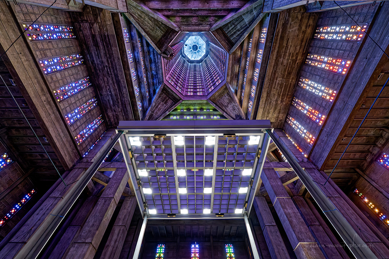 Photo du coeur et de l'intérieur de la tour lanterne de l'Église Saint-Joseph, au Havre.